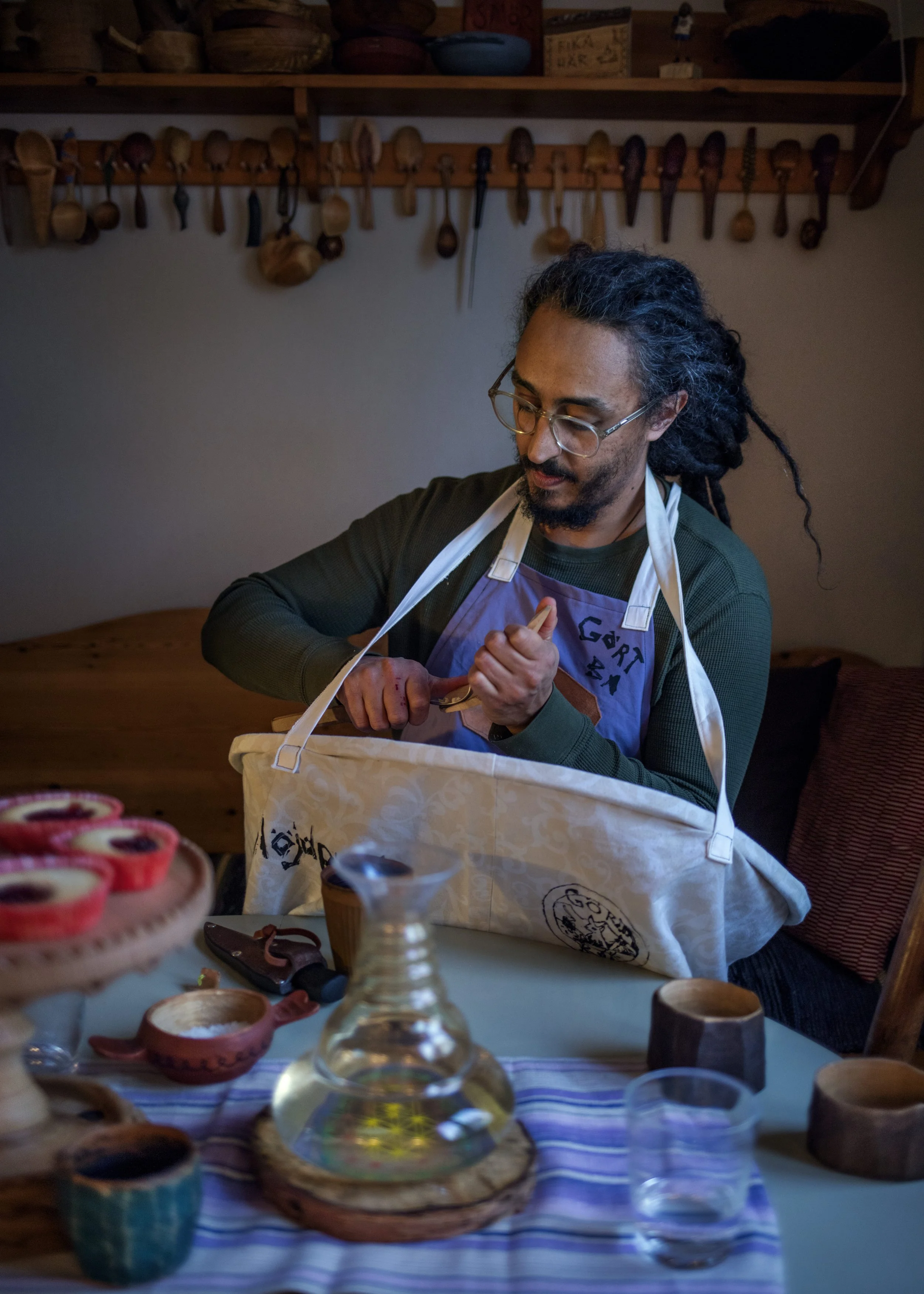 Daniel Berhe i sitt kök, fylld av kärlek å trä! Foto av Thron Ullberg 2025, Umeå